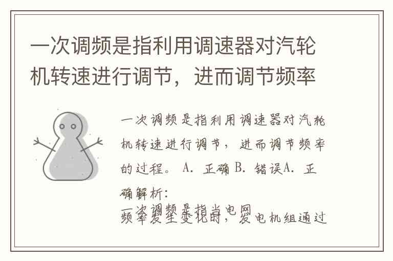 一次调频是指利用调速器对汽轮机转速进行调节,进而调节频率的过程。 A. 正确 B. 错误