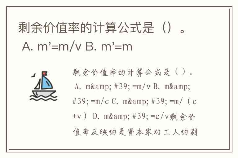 剩余价值率反映的是资本家对工人的剥削程度,其计算方式是剩余价值(m)与可变资本(v)的比率,即: