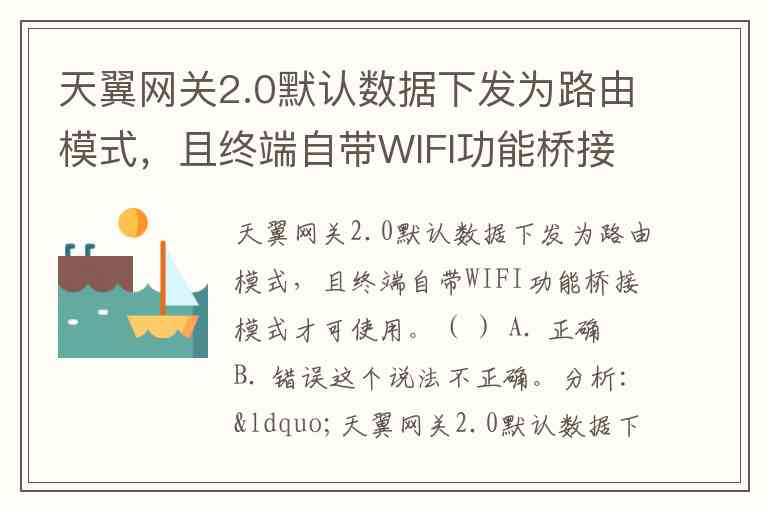 天翼网关2.0默认数据下发为路由模式,且终端自带WIFI功能桥接模式才可使用。( ) A. 正确 B. 错误