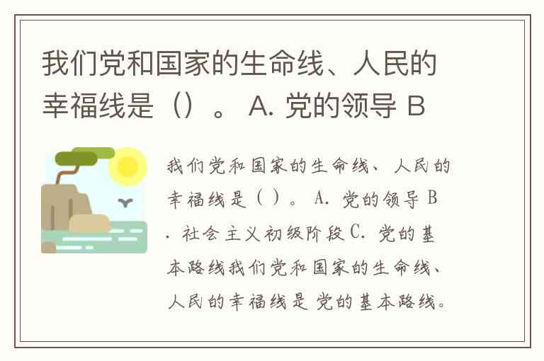 我们党和国家的生命线、人民的幸福线是()。 A. 党的领导 B. 社会主义初级阶段 C. 党的基本路线