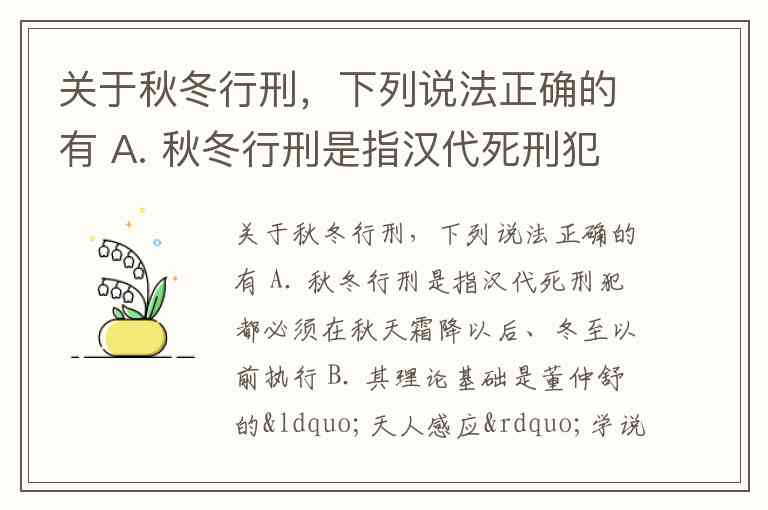 本题旨在考察“秋冬行刑”这一中国古代重要司法制度的内涵、理论基础及其影响。以下是对各选项的逐一分析:
