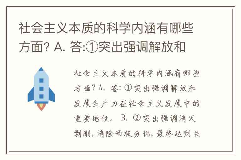 因此,题目中给出的 A 选项 对应第一方面,B 选项 对应第二方面,两者共同构成了社会主义本质的科学内涵。