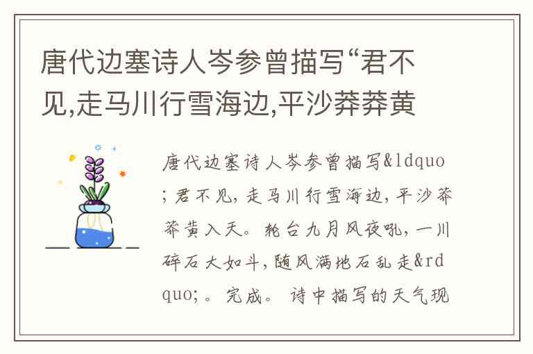 岑参这首诗出自《走马川行奉送封大夫出师西征》,描写的是轮台(今新疆一带)九月恶劣的天气。“平沙莽莽黄入天”“随风满地石乱走”等句,很明显是风卷黄沙、遮天蔽日的景象,这属于沙尘暴天气,而不是大雪(雪海只是地名,并非正在下雪)、台风(新疆无台风)、微风(风很大)的天气。