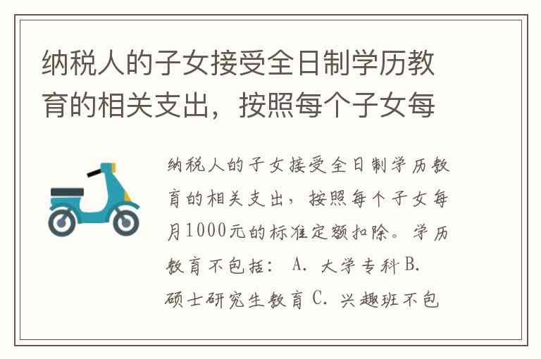 纳税人的子女接受全日制学历教育的相关支出,按照每个子女每月1000元的标准定额扣除。学历教育不包括: A. 大学专科 B. 硕士研究生教育 C. 兴趣班