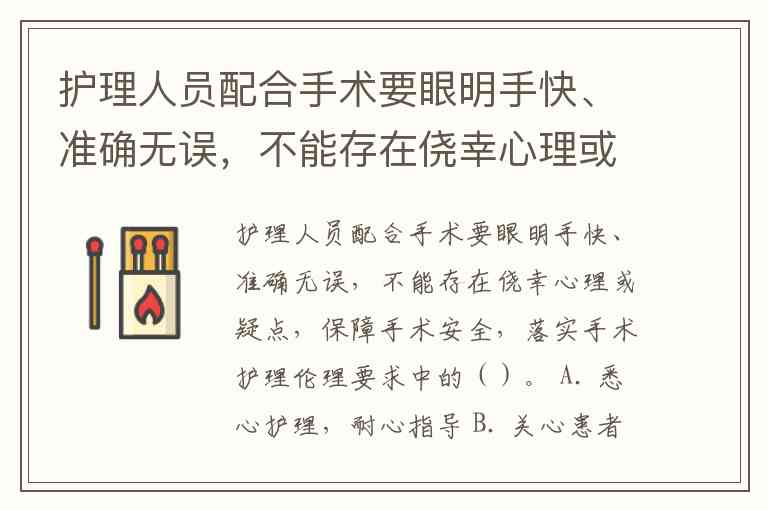 题干中“护理人员配合手术要眼明手快、准确无误,不能存在侥幸心理或疑点,保障手术安全”强调的是专业操作上要技术熟练、态度严谨、认真负责,对应的是 C. 操作熟练,认真负责。