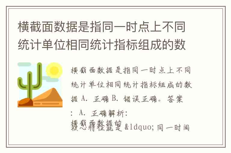 横截面数据是指同一时点上不同统计单位相同统计指标组成的数据 A. 正确 B. 错误