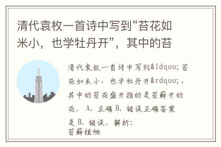 清代袁枚一首诗中写到“苔花如米小,也学牡丹开”,其中的苔花盛开指的是苔藓开的花。 A. 正确 B. 错误