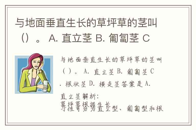解析:草坪草根据生长习性可分为直立型、匍匐型和根状茎型等。题目中描述的“与地面垂直生长”的茎,属于直立茎,向上生长,不贴地蔓延。