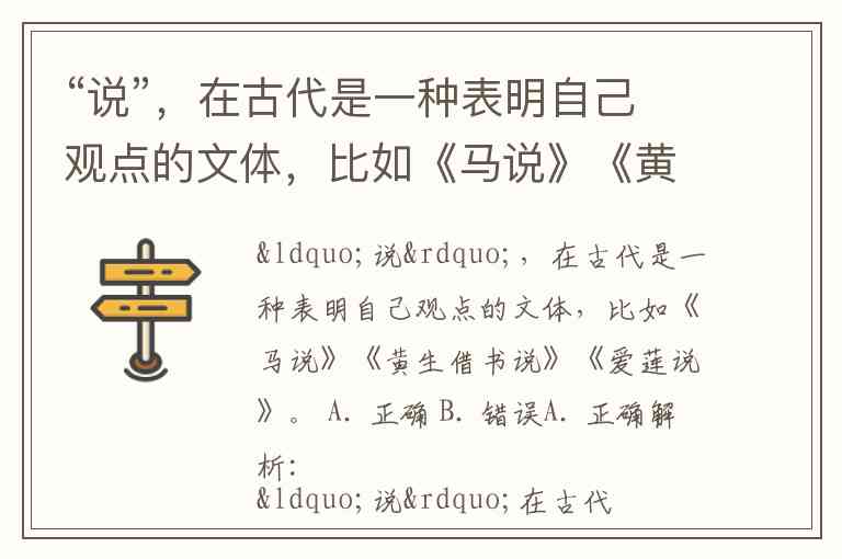 解析:“说”在古代确实是一种文体,多用于阐述作者对某一问题、事物的见解,往往带有议论、记叙或抒情的色彩,写法较为自由。例如: