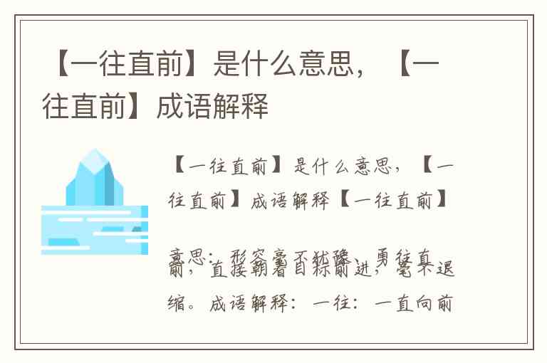 与“一往无前”意思相近,但“一往直前”更突出“直”的取向,即方向明确、不绕弯;而“一往无前”侧重“无前”,指无所阻挡的气势。两者常可互换使用。