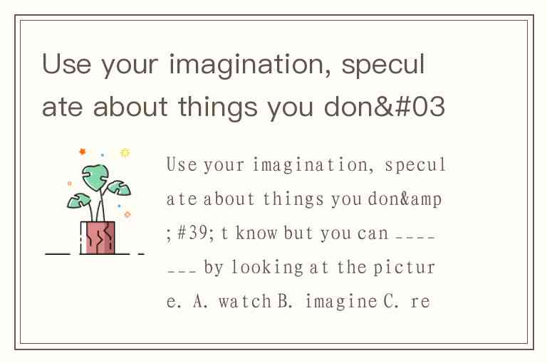 Use your imagination, speculate about things you don't know but you can _______ by looking at the picture. A. watch B. imagine C. read D. act