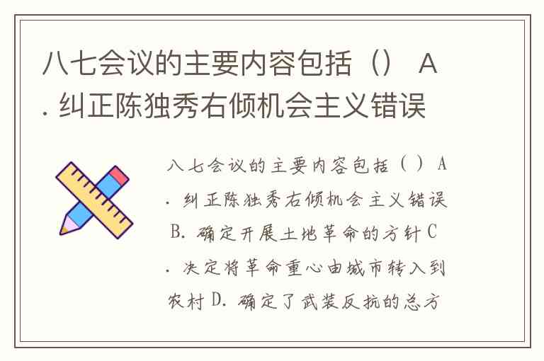 八七会议的主要内容包括() A. 纠正陈独秀右倾机会主义错误 B. 确定开展土地革命的方针 C. 决定将革命重心由城市转入到农村 D. 确定了武装反抗的总方针 E. 选出了以为书记的中央临时政治局