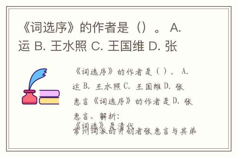 《词选序》的作者是()。 A. 运 B. 王水照 C. 王国维 D. 张惠言
