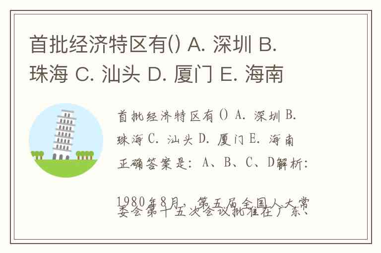 首批经济特区有() A. 深圳 B. 珠海 C. 汕头 D. 厦门 E. 海南