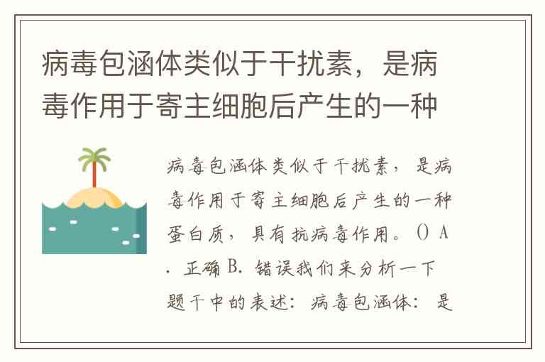 题干说“病毒包涵体类似于干扰素,是病毒作用于寄主细胞后产生的一种蛋白质,具有抗病毒作用”,这有混淆概念的问题: