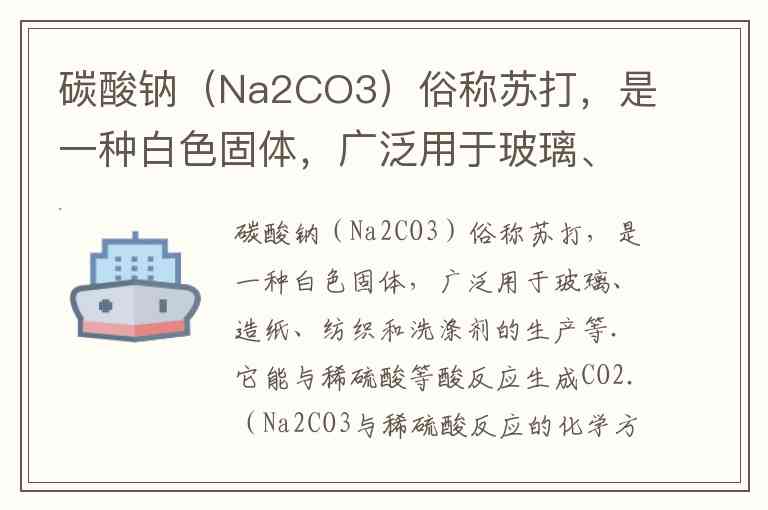 n(Na₂CO₃) = n(CO₂) = 0.1 mol → M(Na₂CO₃) = 106 g/mol → m(Na₂CO₃) = 。
