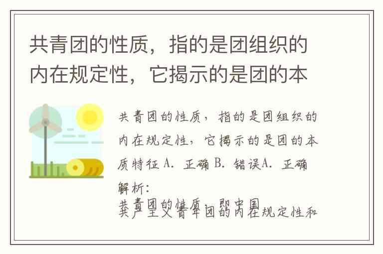 因此,题目中的表述准确地概括了“共青团的性质”的含义,即团组织的内在规定性,它揭示了团的本质特征。