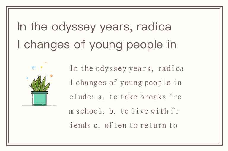 In the odyssey years, radical changes of young people include: a. to take breaks from school. b. to live with friends c. often to return to living with their parents A. to take breaks from school B. to live with friends C. often to return to living with their parents