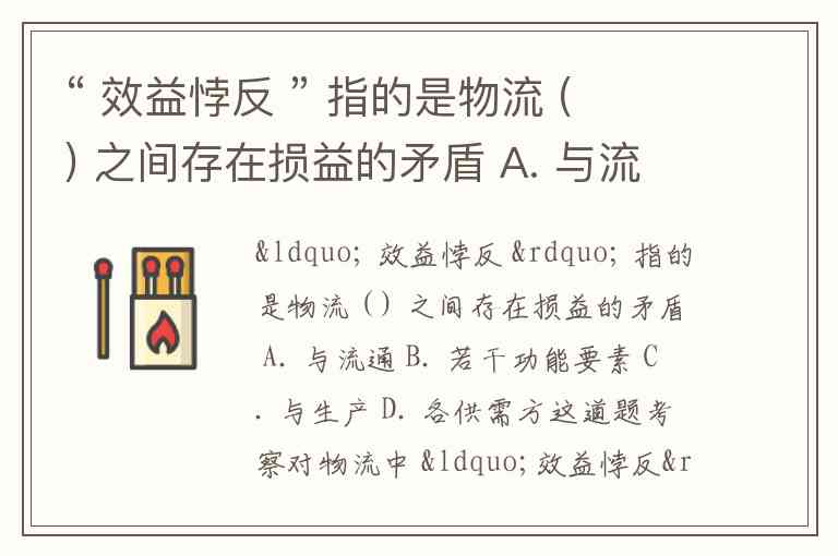C 与生产:物流与生产的矛盾是存在的,但题干更强调的是物流内部的“效益悖反”经典含义。