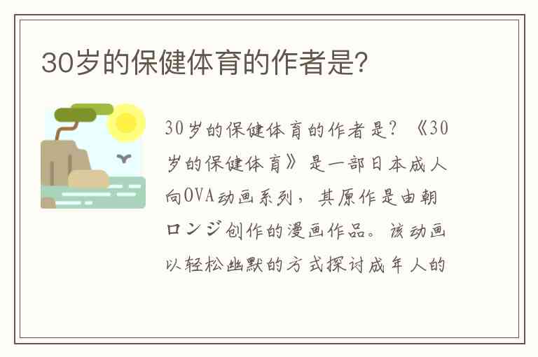 如果您指的是其他同名作品或相关衍生作品,可能需要更具体的上下文确认,但目前广为流传的动画版《30岁的保健体育》原作者即为朝戸ロンジ。