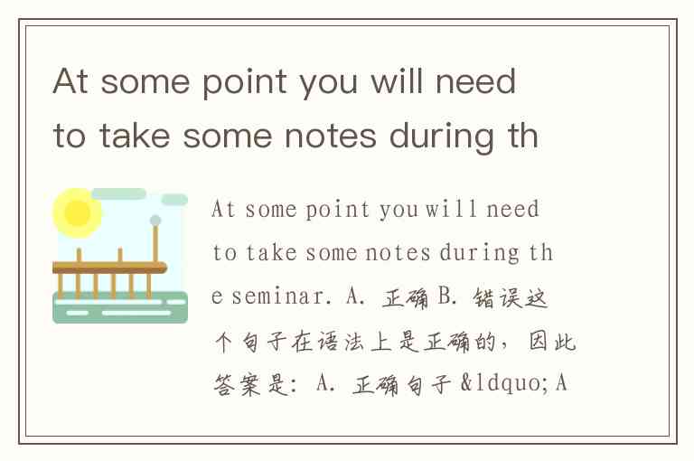 句子 “At some point you will need to take some notes during the seminar.” 表达了一个合理的未来情境,语法没有错误。