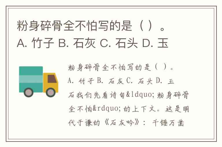 粉身碎骨全不怕写的是( )。 A. 竹子 B. 石灰 C. 石头 D. 玉石