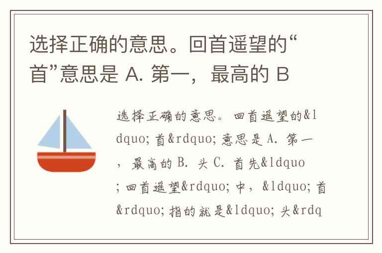 选择正确的意思。回首遥望的“首”意思是 A. 第一,最高的 B. 头 C. 首先
