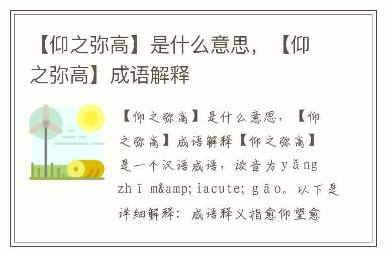 【仰之弥高】是一个汉语成语,读音为 yǎng zhī mí gāo。以下是详细解释: