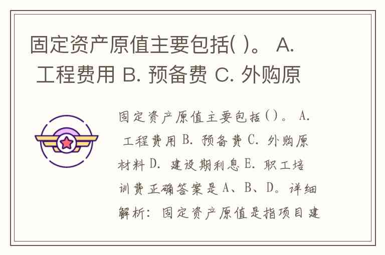 固定资产原值主要包括( )。 A. 工程费用 B. 预备费 C. 外购原材料 D. 建设期利息 E. 职工培训费