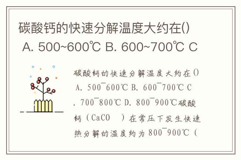 碳酸钙的快速分解温度大约在() A. 500~600℃ B. 600~700℃ C. 700~800℃ D. 800~900℃