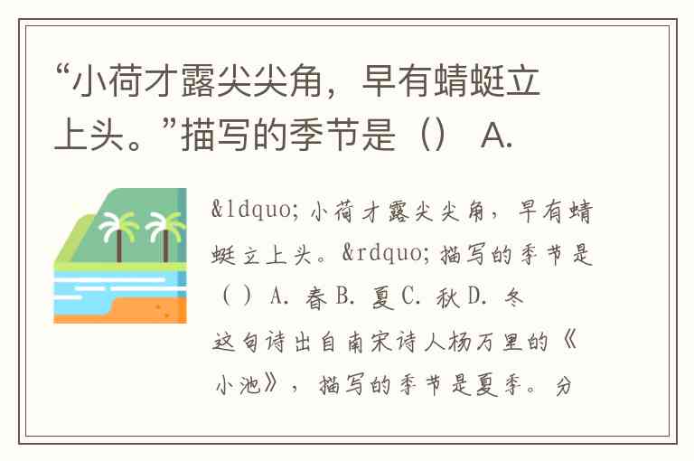 “小荷才露尖尖角,早有蜻蜓立上头。”描写的季节是() A. 春 B. 夏 C. 秋 D. 冬