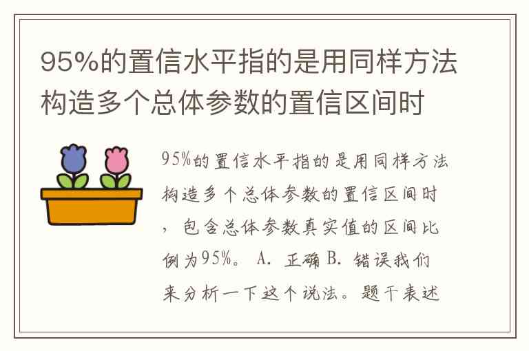 95%的置信水平指的是用同样方法构造多个总体参数的置信区间时,包含总体参数真实值的区间比例为95%。