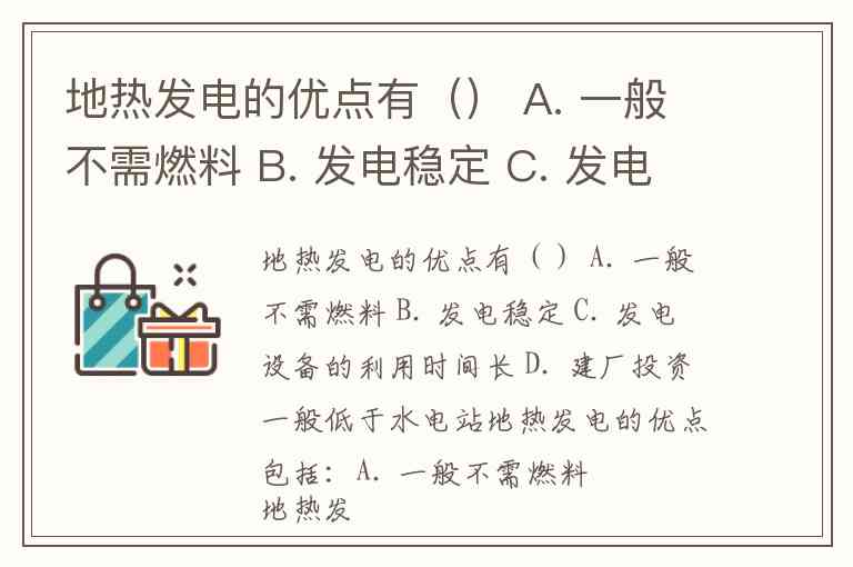 地热发电的优点有() A. 一般不需燃料 B. 发电稳定 C. 发电设备的利用时间长 D. 建厂投资一般低于水电站