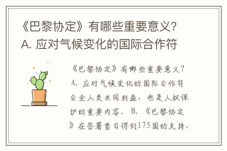 综上,这些选项共同体现了《巴黎协定》在政治、人权、全球治理模式及经济机制等方面的重要意义。