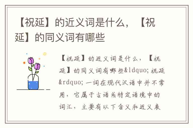 “祝延”一词在现代汉语中并不常用,它属于古语或特定语境中的词汇,主要有以下含义和近义表达: