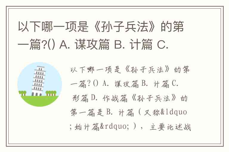 以下哪一项是《孙子兵法》的第一篇?() A. 谋攻篇 B. 计篇 C. 形篇 D. 作战篇