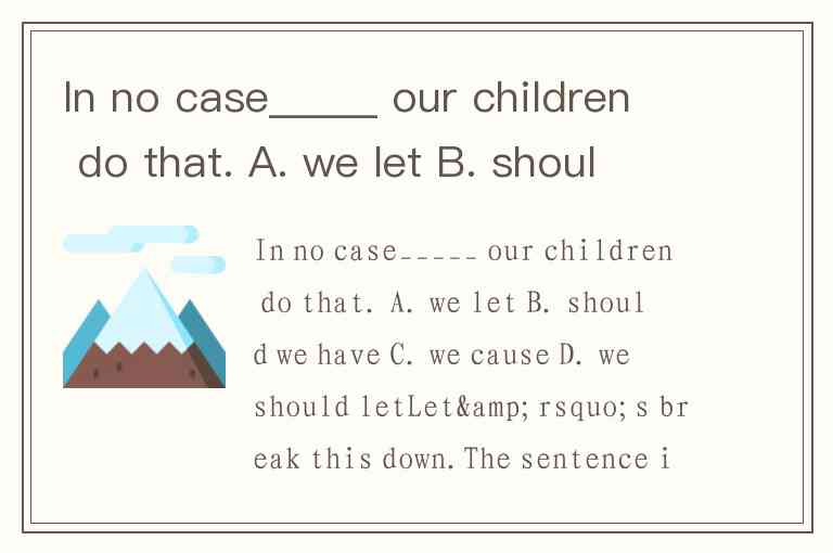 In no case_____ our children do that. A. we let B. should we have C. we cause D. we should let