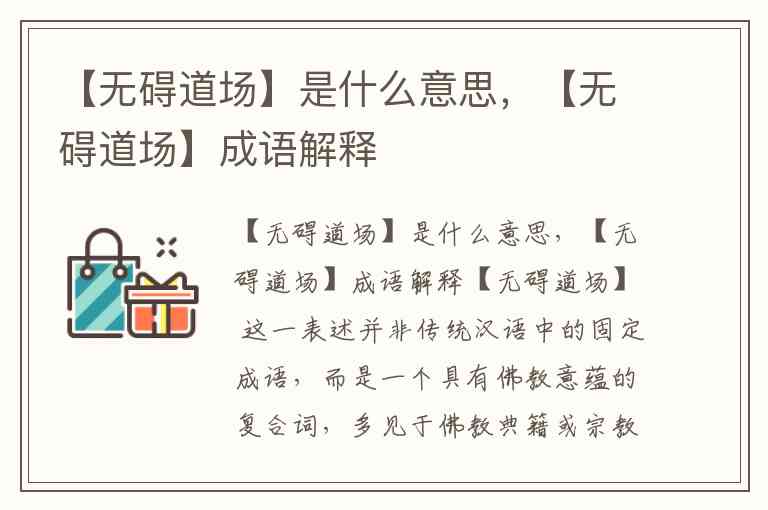 【无碍道场】 这一表述并非传统汉语中的固定成语,而是一个具有佛教意蕴的复合词,多见于佛教典籍或宗教语境中。其含义可以从字面与宗教义理两个层面来理解: