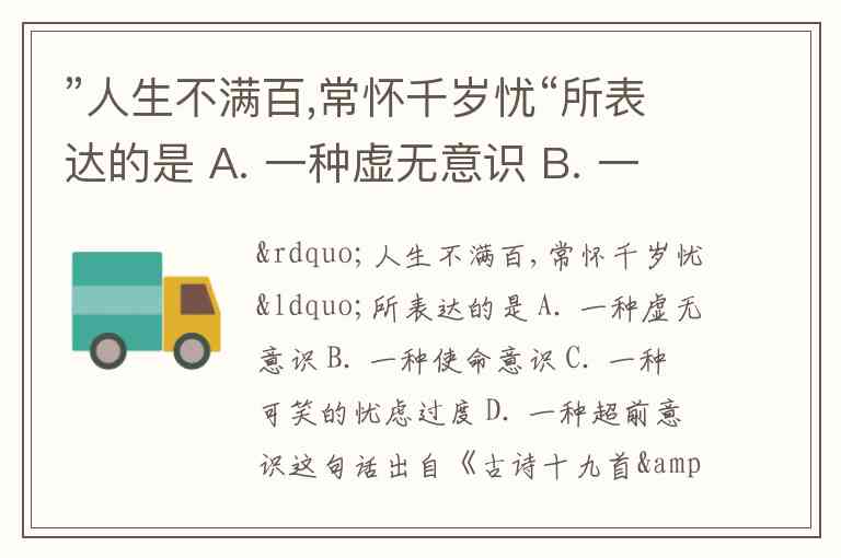 ”人生不满百,常怀千岁忧“所表达的是 A. 一种虚无意识 B. 一种使命意识 C. 一种可笑的忧虑过度 D. 一种超前意识
