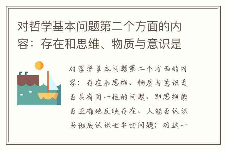 对哲学基本问题第二个方面的内容:存在和思维、物质与意识是否具有同一性的问题,即思维能否正确地反映存在、人能否认识或彻底认识世界的问题;对这一问题作不同回答,哲学上可划分为() A. 唯物主义和唯心主义 B. 反映论和先验论 C. 可知论和不可知论 D. 唯物史观和唯心史观