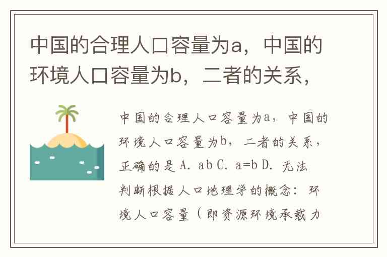 题目通常认为合理人口容量小于环境人口容量,因此选项应为 A. a<b。