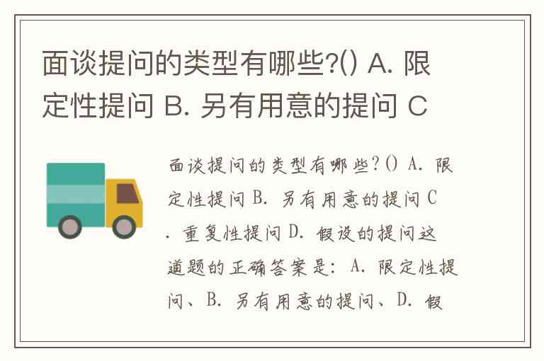 面谈提问的类型有哪些?() A. 限定性提问 B. 另有用意的提问 C. 重复性提问 D. 假设的提问