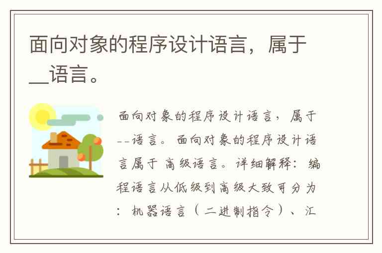 面向对象程序设计(OOP)语言如 Java、C++、Python、C# 等,都是通过类、对象、继承、多态等高级抽象机制来组织代码,因此属于高级语言的范畴。