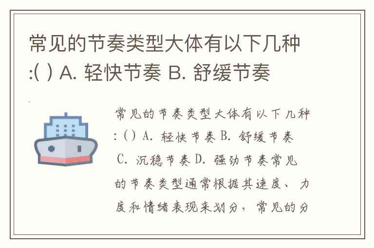 常见的节奏类型大体有以下几种:( ) A. 轻快节奏 B. 舒缓节奏 C. 沉稳节奏 D. 强劲节奏
