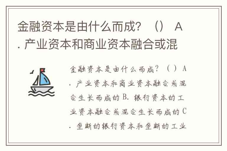 金融资本是由什么而成?() A. 产业资本和商业资本融合或混合生长而成的 B. 银行资本的工业资本融合或混合生长而成的 C. 垄断的银行资本和垄断的工业资本融合或混合生长而成的 D. 垄断银行资本和银行资本融合或混合生长而成的