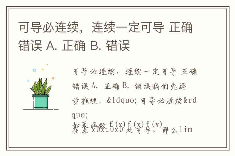 可导必连续,连续一定可导 正确错误 A. 正确 B. 错误