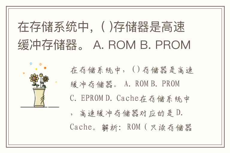 在存储系统中,( )存储器是高速缓冲存储器。 A. ROM B. PROM C. EPROM D. Cache