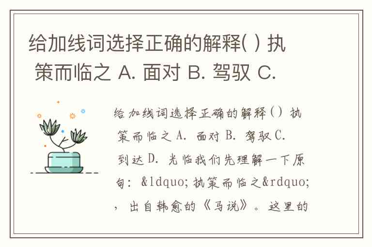 给加线词选择正确的解释( ) 执 策而临之 A. 面对 B. 驾驭 C. 到达 D. 光临