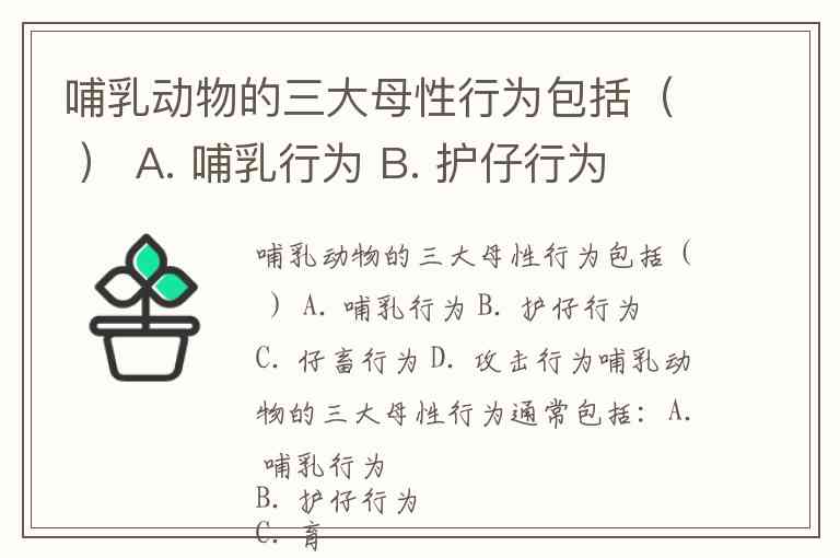 哺乳动物的三大母性行为包括( ) A. 哺乳行为 B. 护仔行为 C. 仔畜行为 D. 攻击行为