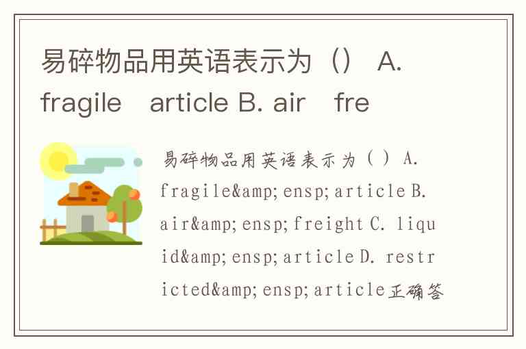 易碎物品用英语表示为() A. fragile article B. air freight C. liquid article D. restricted article